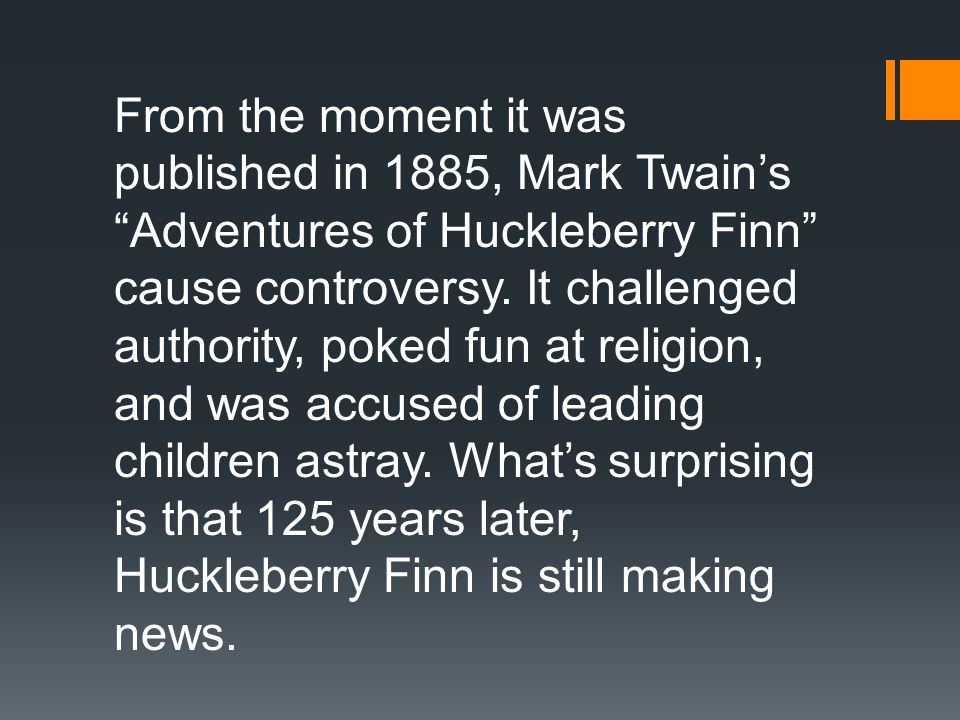 On the raft Huck becomes friends with a man who had become a symbol of the antislavery movement and who becomes a father to Huck. Huck Finn The Adventures of Huckleberry Finn. Twain speaks to the audience of religious southerners like Miss Watson who feel they know the Bible yet remain blind.
